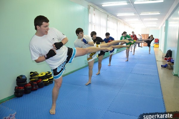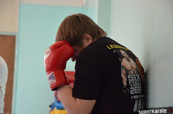 Уже через 30 минут стекла в зале запотели, а через два с половиной часа, после работы в парах, на лапах, сиквенсов и комбинаций Сэнсей вспомнил, что есть-таки временные рамки. Все уставшие, но довольные, сделали финальное упражнение из разряда "вспомни ОФП в Академии Ичигеки".