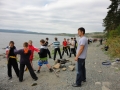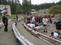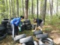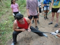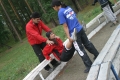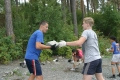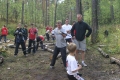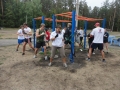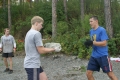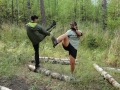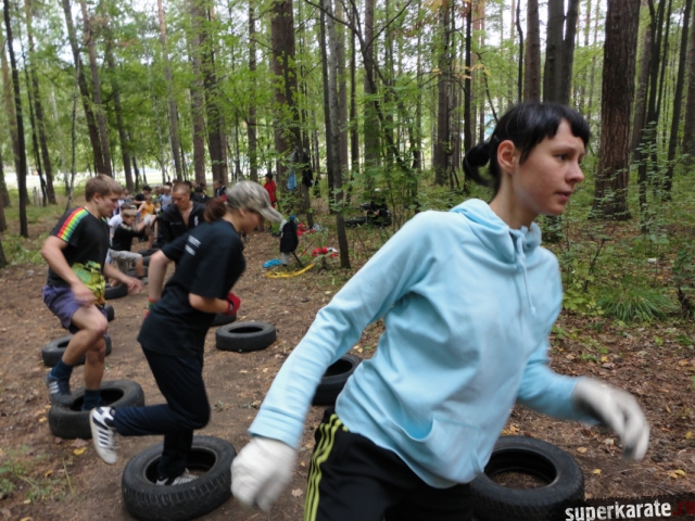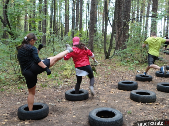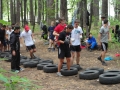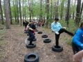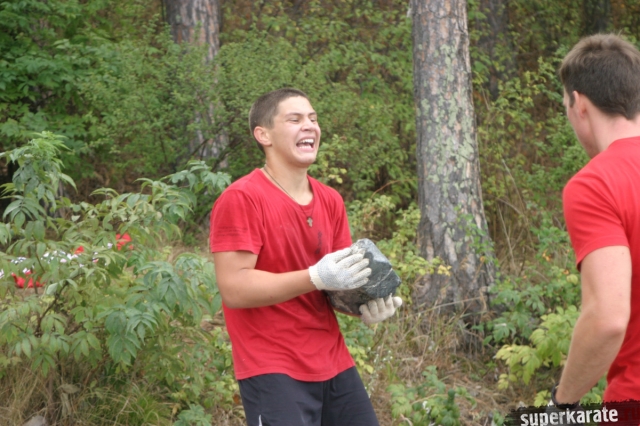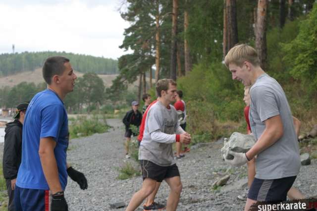 Во время дневных тренировок спортсмены работают с резиной, с бревнами, камнями, покрышками.