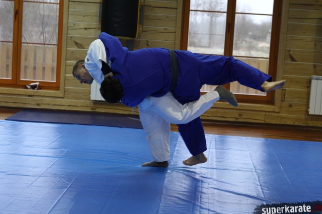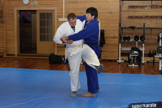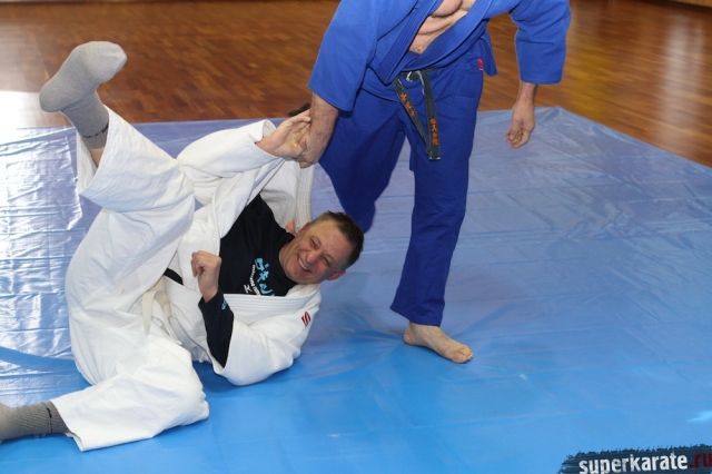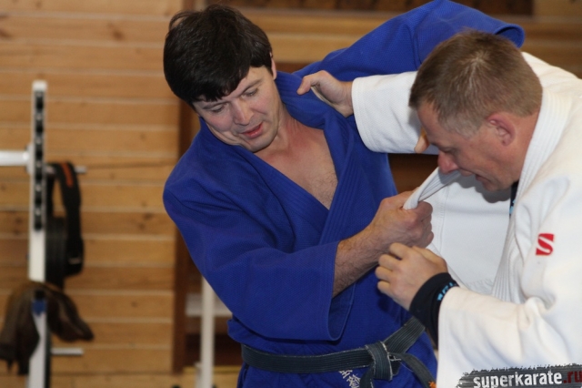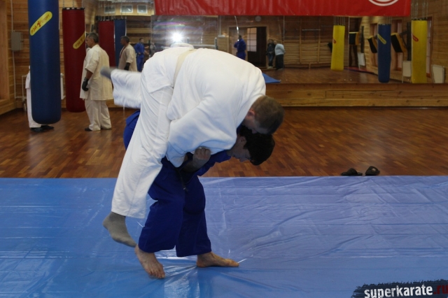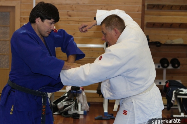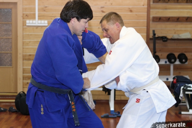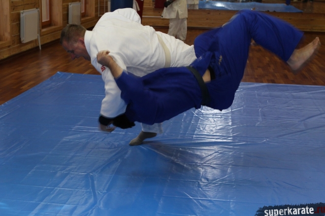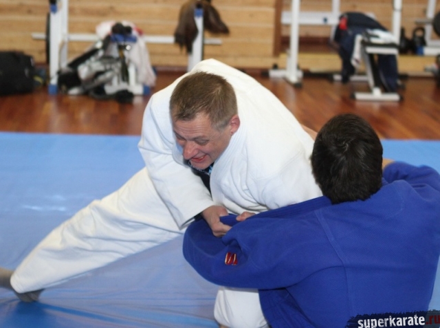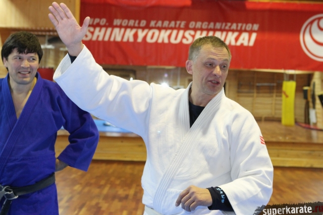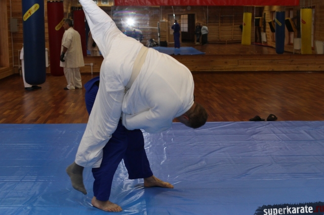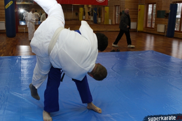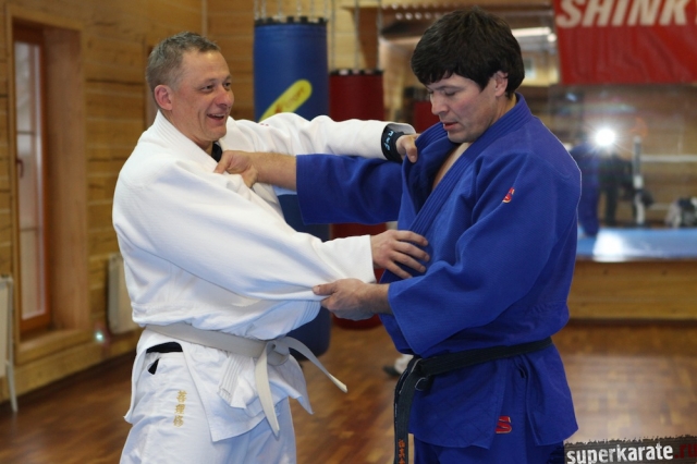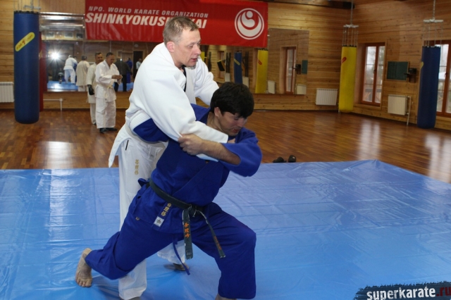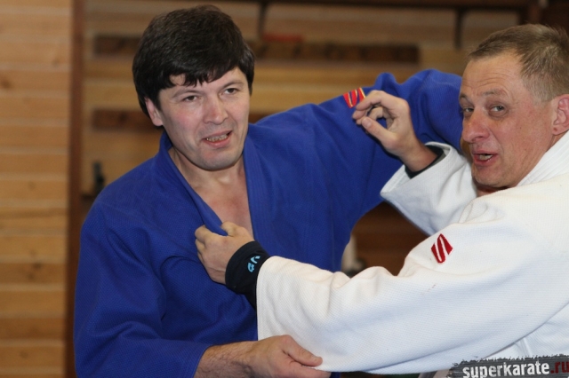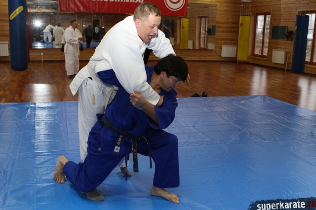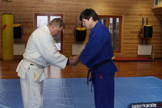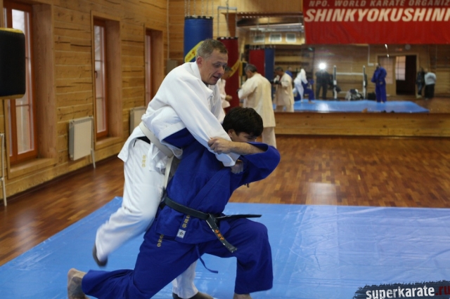 С Урала пожаловал сэнсей Юрий Кочкин, один из первых учеников-киокушиновцев шихана Глушенкова. Переодевшись в дзюдоги Юрий валял, душил и кидал своего первого учителя, и в его боевом энтузиазме не проглядывалось и капли снисхождения к юбиляру.