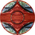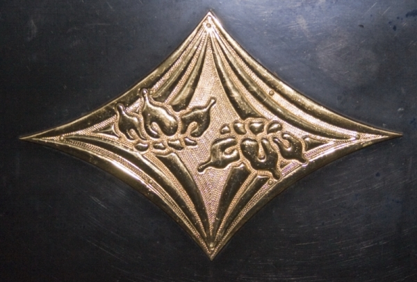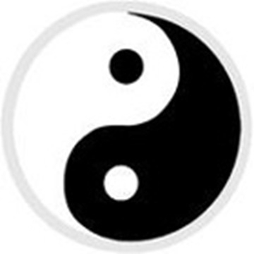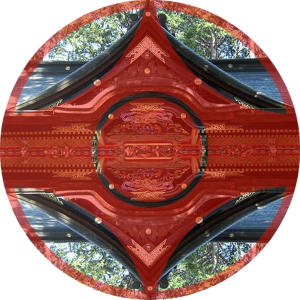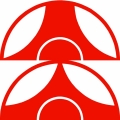 У храма Мицумине есть свой логотип - два ириса взаимо-перевёрнутые в ромбе, т.е. ось проходит по диагонали. Наложим канку – совпадает. Оси не совпадают. Разделим канку по диагонали, получилась рука, держащая шар. Значит, вторая рука должна быть перевёрнута, где-то это уже было. Ну конечно, знаменитая эмблема инь–ян!