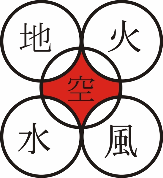 Всем известно, что уходя в горы, Мас Ояма с собой взял труд Эйдзи Ёсикавы - новеллы о Миямото Мусаси. Миямото Мусаси написал труд под названием «Книга пяти колец», где каждое кольцо имеет своё название: земля, вода, огонь, ветер, пустота. На картинке мы видим «олимпийские кольца», но каждое имеет своё название. Что самое интересное, иероглиф пустота, он же небо, «смотреть в пустоту» - канку. На фото мы видим основателя, созерцающего Канку. (У меня нет фотки, где Ояма держит руки вверху). На фото у Фудзи и под водопадом - тоже руки в положении канку. В дзен-буддизме такое положение рук при медитации обозначает воронку, втягивающую энергию, на уровне танден. Про танден и говорить нечего – центр всего, а центр всегда обозначался точкой. Так что же нужно созерцать?