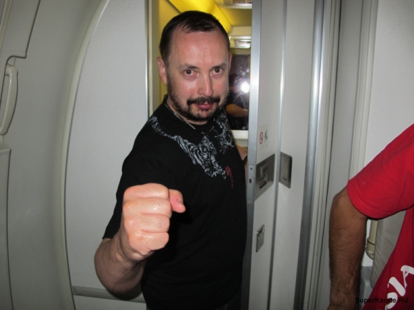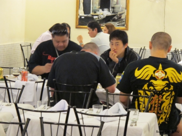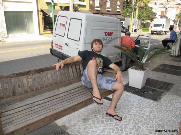 Пока отсутствовал переводчик Петр, Филио прикололся над нашим английским (большой привет моей учительнице по немецкому языку!) и понял, что мы не знаем и португальский. Я решил пообщаться с ним на языке Киокушина и прочитал ему первый куплет додзе куна. Мы друг друга поняли...