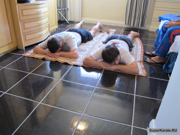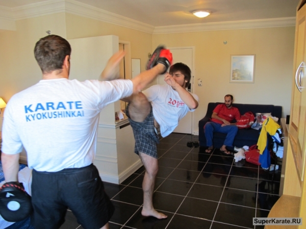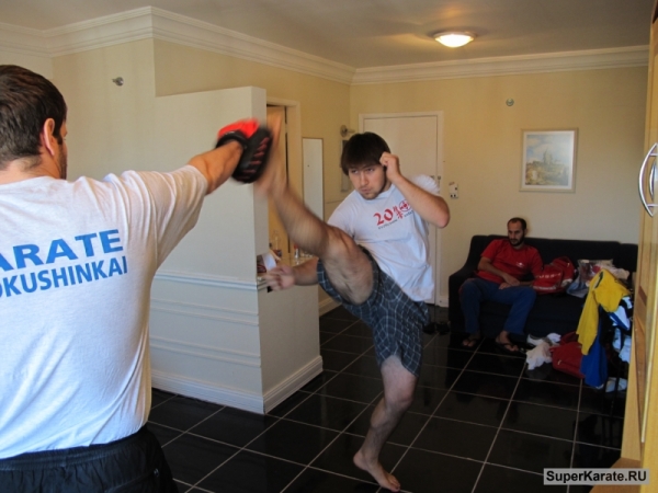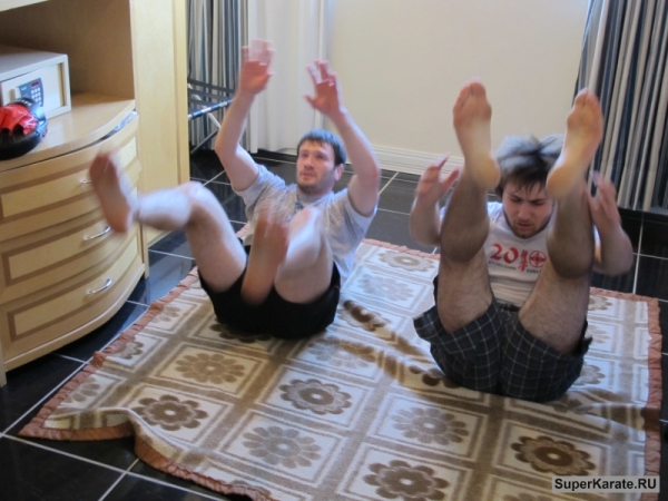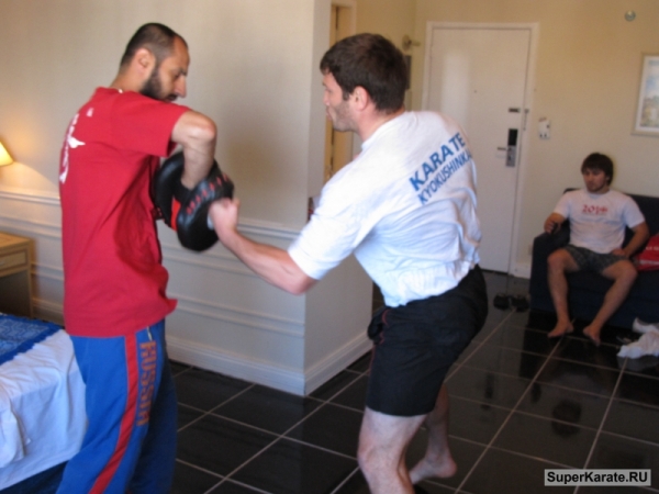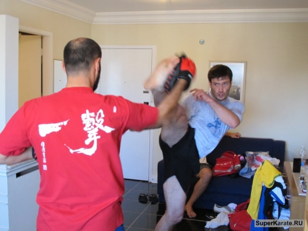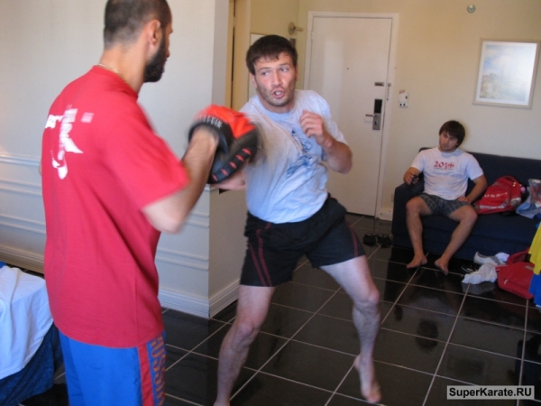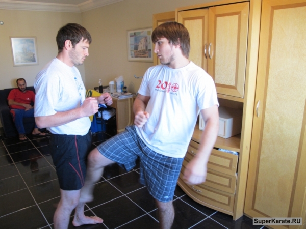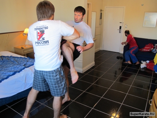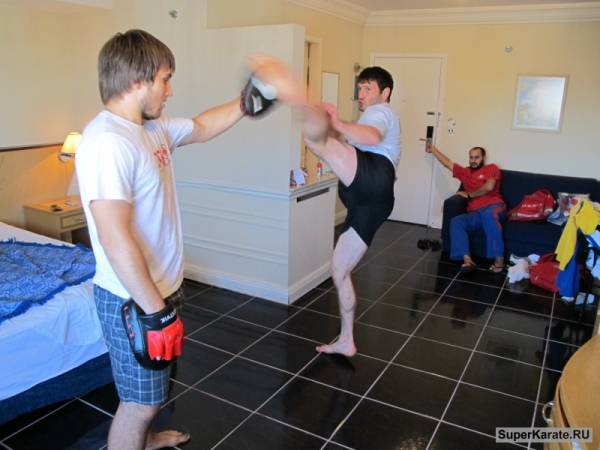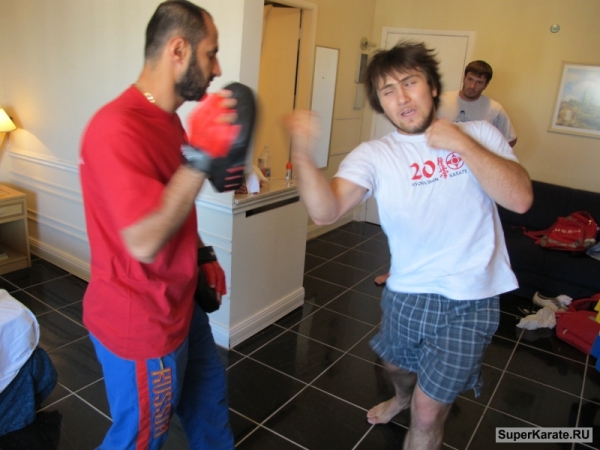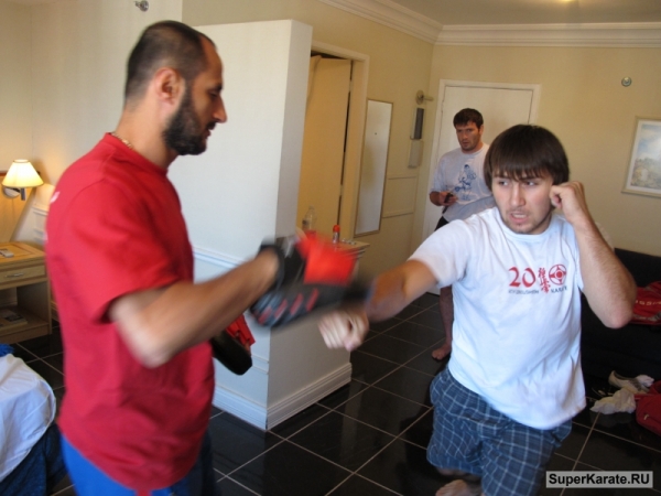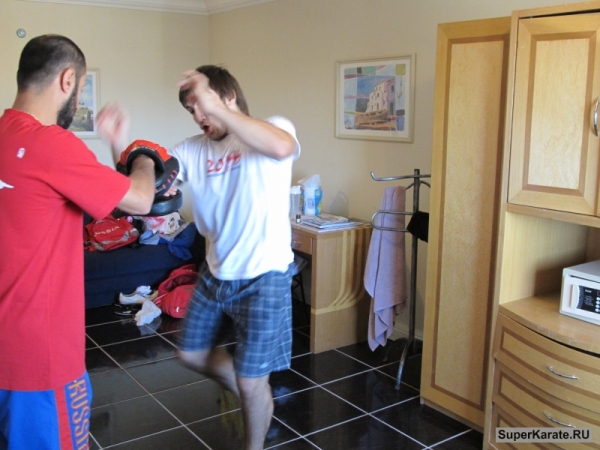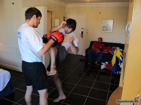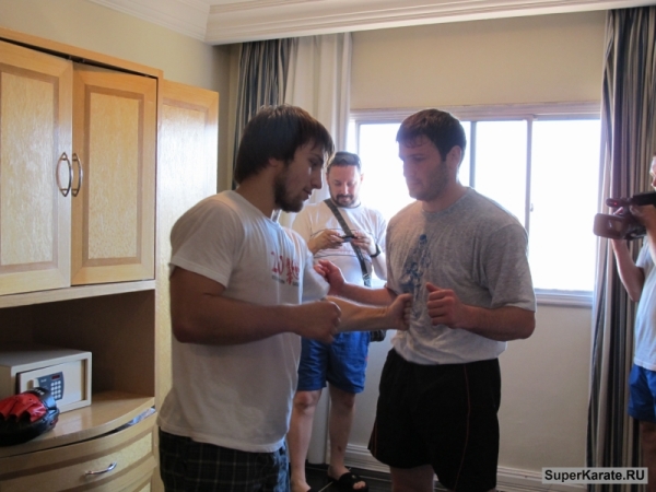 Последнюю тренировку перед боями Тариел Николеишвили и Ибрагим Гогаев провели прямо в номере.
