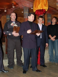 Это вселяет оптимизм: глядишь, в позитивном диалоге многочисленным федерациям Кёкусина удастся наконец устранить все свои политические разногласия и придти к консенсусу. Немалая заслуга в создании такой атмосферы, безусловно, принадлежит устроителям церемонии, которые не забыли никого и всем воздали должное. Сергей Бадюк, по инициативе которого галерея «Шанти» выступила титульным спонсором мероприятия, самолично встречал всех гостей у входа, провожал в бар, находя время, чтобы с каждым перекинуться парой теплых слов...