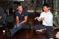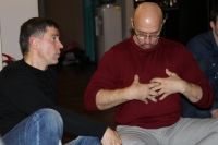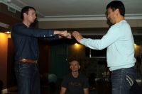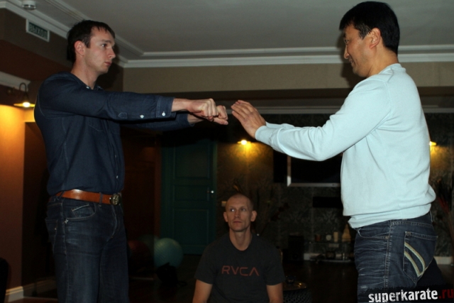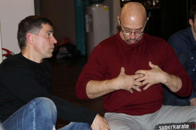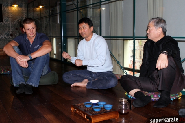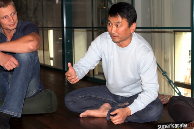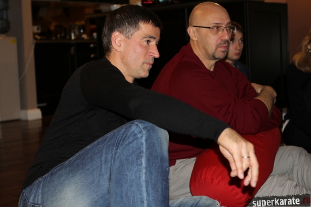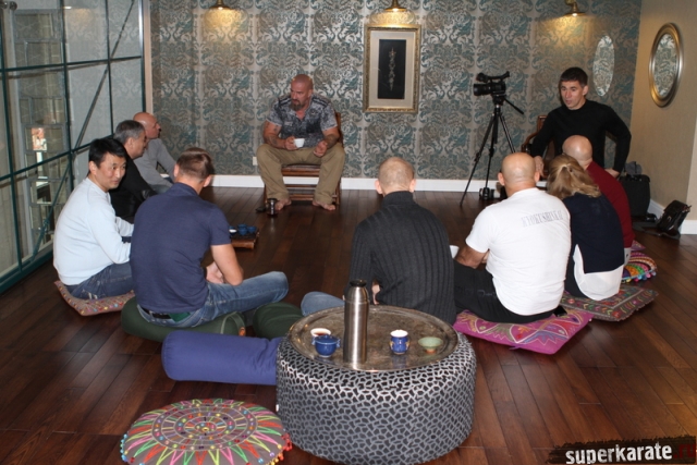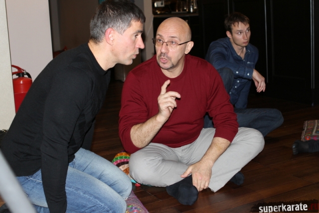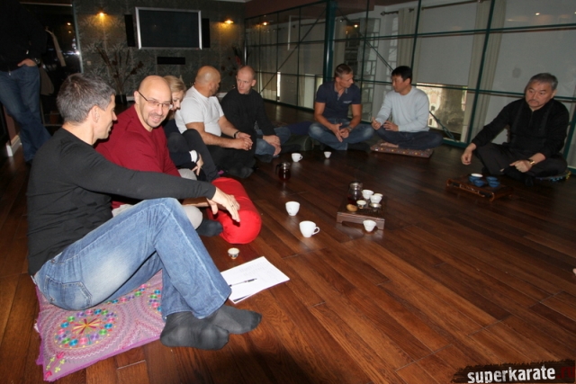 Первая встреча получилась "без галстуков" - в доги переодеваться не стали, а посвятили время общению. Диапазон диалогов впечатлил - от целей детских тренировок, историй от японских мастеров и обсуждения "пенсионного" каратэ, до анекдота про "санчин дачи и невидимку" от Николая Коровина.