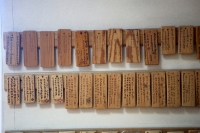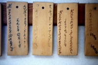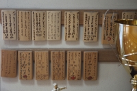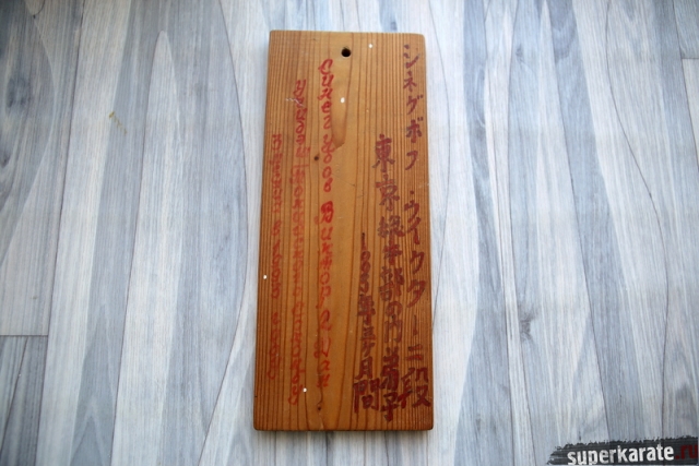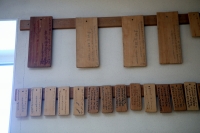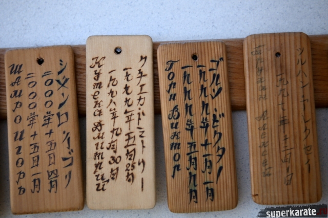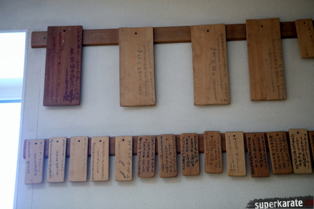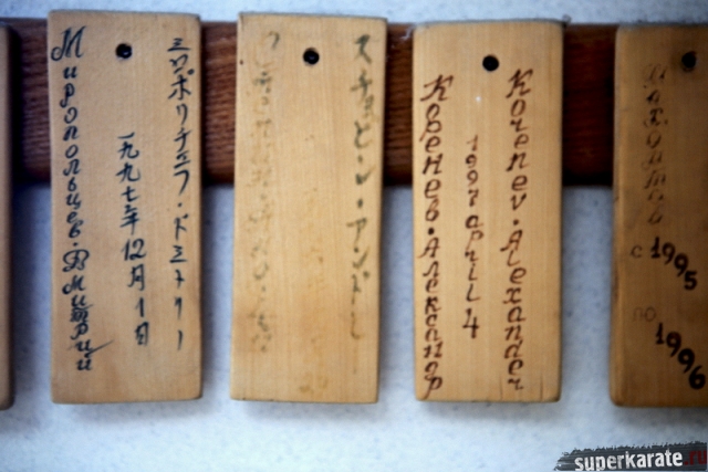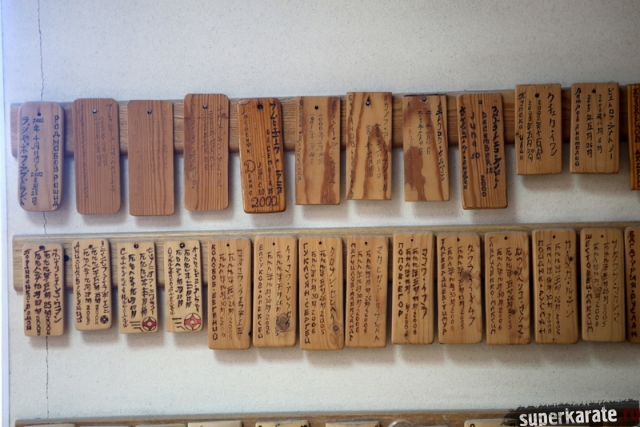 Среди деревянных табличек разной степени потертости, можно увидеть табличку одного из первых российских бранч-чифов Синегубова. Здесь же висят деревянные напоминания о моторых Александре Карпачеве и Викторе Горне. На табличке Андрея Степина осталась читаемой только японская надпись.