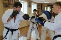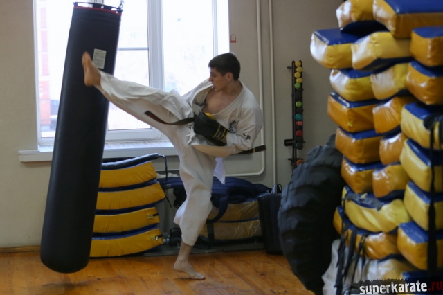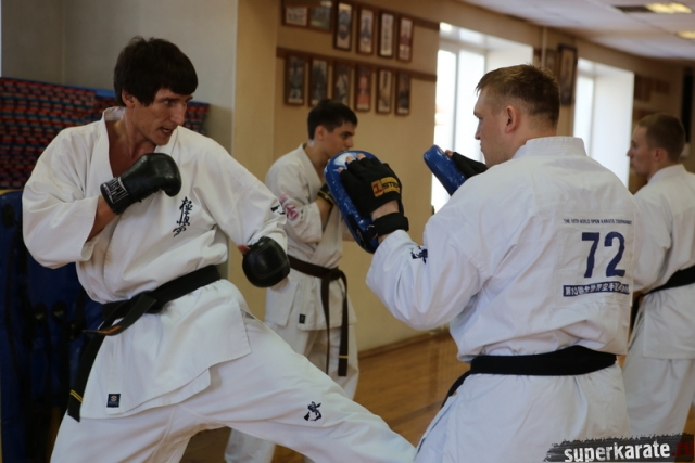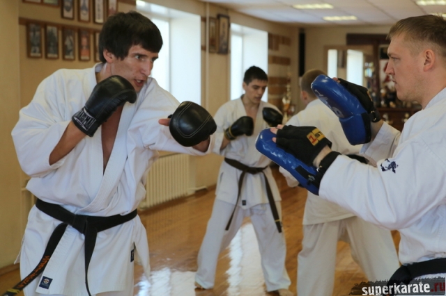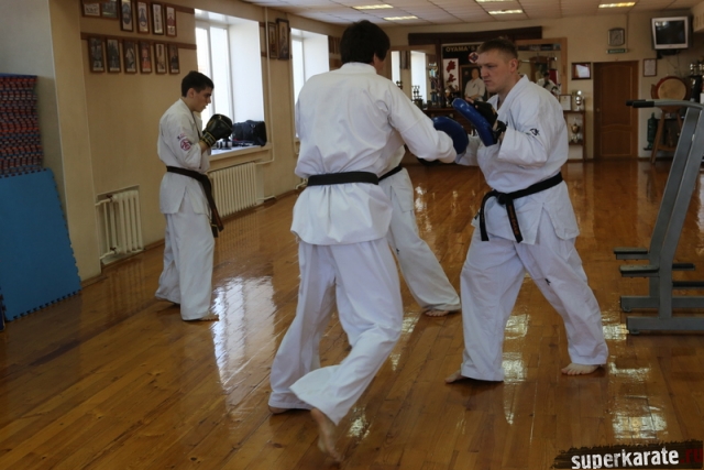 В этом же зале готовятся наши каратисты, которым предстоит 1 февраля 2015 года сразиться с китайскими каратистами по правилам Киокушин профи.