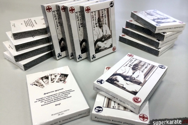 В этом году к 23 февраля, сугубо мужскому празднику, мы решили не выпускать очередную праздничную картинку, а поступили нетривиально. Мы разработали и выпустили тематические киокушиновские игральные карты, притом на профессиональном уровне (от карточного картона с внутренним графитовым слоем, до высококачественной офсетной печати).