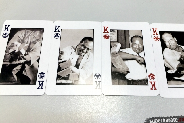 В колоде 36 карт, с лучшими фотографиями сосая Масутацу Оямы, которые вы смело можете добавить в свою коллекцию киокушиновских артефактов. И конечно эти карты можно использовать по назначению.