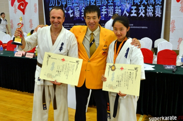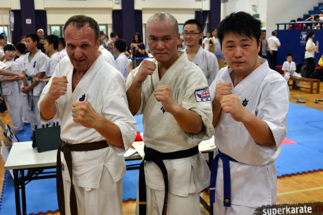 IKO World SoKyokushin, которой руководят шиханы Хасегава Казуюки и Дайго Оиши. В КНР представительство находится в Шанхае. К слову представители именно этой организации первыми познакомили Китай с Киокушином - 25 лет назад. Руководит китайским представительством бессменно 6 дан шихан Гон Хан (Gong Han). Этот турнир собрал всех руководителей, кто развивает киокушинкай в Китае. За огромным столом президиума турнира были почти все председатели федераций. Просторный светлый зал центрального «Бадминтон Холла» Шанхая. В самом центре города. Три татами, полторы тысячи зрителей и почти 350 участников. С потолка свисают огромные портреты Сосая, Хасегава и Оиши.