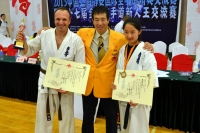 Много девушек принимало участие именно в кумитэ. Запомнилась одна чемпионка, красивая с европейскими чертами лица женщина, модельного роста, почти 180 см и весом 75 кг. Эта спокойная внешне дама оказалась настоящим 3-м даном и билась жестко и мощно. Девчонки - вот кто в Китае по настоящему любит киокушин и превращает его во что-то стильное и модное - мальчиковые стрижки, мужское владение ударной техникой, сплошные черные пояса, - виртуозы татами в «юбках». На многих татуировки на тему киокушина, драконы и популярные здесь рыбы - символы удачи. Некоторые похожи на «терминаторов», иногда казалось, что на татами поединок между девушкой и парнем, стрижки под мальчишку, плотно сбитая фигура, мужское поведение, перемещения, удары, невозмутимо и мощно двигается вперед, в такой бронебойно-танковой манере.Турнир оказался международным. Дрался один боец из Японии из организации Хамаи, 2 дан. Он студент и учится в Пекине. Проиграл он во втором поединке, «бензин» на второй минуте боя стал у парня заканчиваться. А в целом дрался интересно, видно было, что боец не китайский.