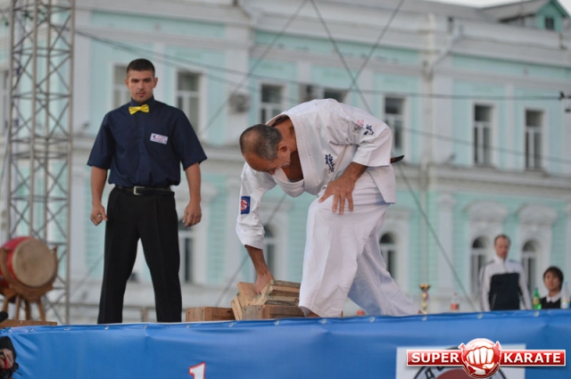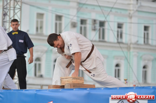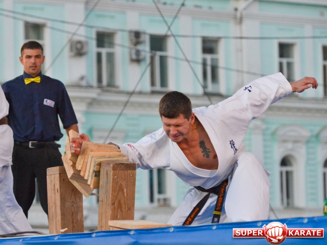 У каждого претендента на титул сильнейшего было три подхода и одинаковые шансы. Однако как оказалось, промахнуться и не разнести в щепки стопку деревянных досок, может даже мастер Киокушинкай карате. В итоге лучшие результаты показал обладатель черного пояса 2 Дана Константин Хахулин, расколов рукой, локтем и ногой 15 досок.