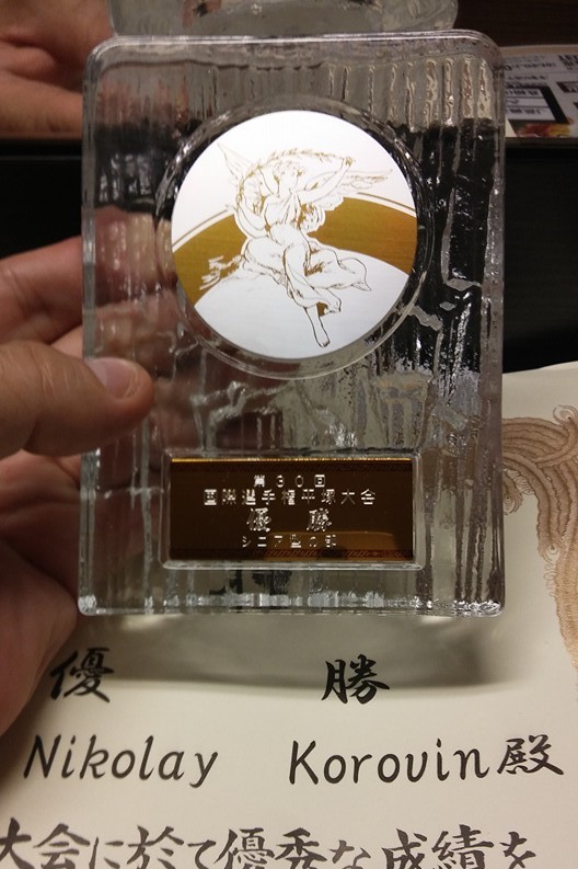 Победными Ката для Николая Коровина стали Сэйюнчин и Шисочин. В финале он хотел исполнить Ката Анан Рюэй-рю, но не рискнул из-за очень скользкого татами.Косики каратэ в Японии очень крупная организация и помимо традиционных участников, в этот раз в соревнованиях принимали участие спортсмены и Киокушина и Ашихара-каратэ.