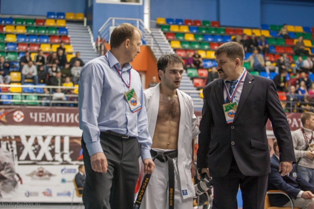 После шести минут боя судьи отдали победу бойцу из Санкт-Петербурга с раздельным решением 3-2. Но ликующие болельщики и судьи на татами были остановлены отменой этого решения главным судьей соревнований все тем же шиханом Андреем Бура.
