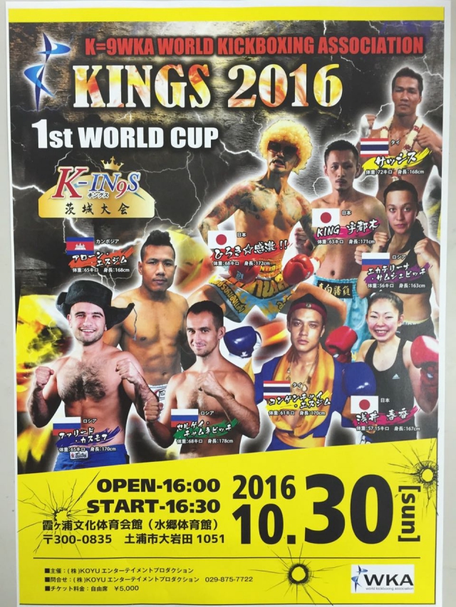 30 октября 2016 года в Японии в префектуре Ибараки состоится Первый профессиональный турнир "KING 2016" 1st WORLD CUP новой версии японского кикбоксинга в формате К-9, возглавляемой известным японским мастером боевых искусств - Таканори Кавамура. В турнире примут участие три киокшиновца из России: кемеровчане, чемпионы мира KWU и IFK Фарид Касумов, Сергей Чмуневич и Екатерина Черкес из Хабаровска.