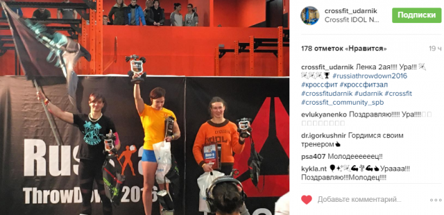 "Crossfit Udarnik на выезде. Покоряем Москву. На арене было жарко, атмосфера была нереально заряжена, просто так свое место отдавать никто не хотел. Заруба и интрига сохранялась до последнего комплекса. Удалось забраться на пьедестал. Всем спасибо, ударники, вы придавали мне силы и энергии, киокушиновцы, спасибо и вам за теплые слова."