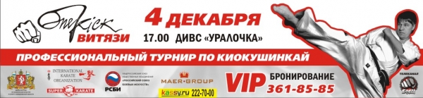 4 декабря Дворец Игровых Видов Спорта "Уралочка" г.Екатеринбурга примет очередной профессиональный турнир по Киокушинкай Онкик "Витязи".