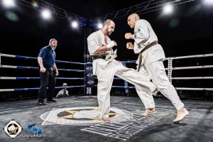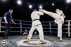 И во время выхода на бой и на протяжении всего поединка, весь зал поддерживал Джонатана скандируя его имя. Он их не подвел. Победу в поединке, под неистовые овации, судьи единогласно присудили сэнсею Тинео.