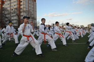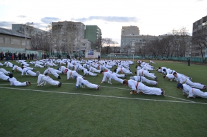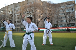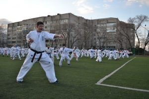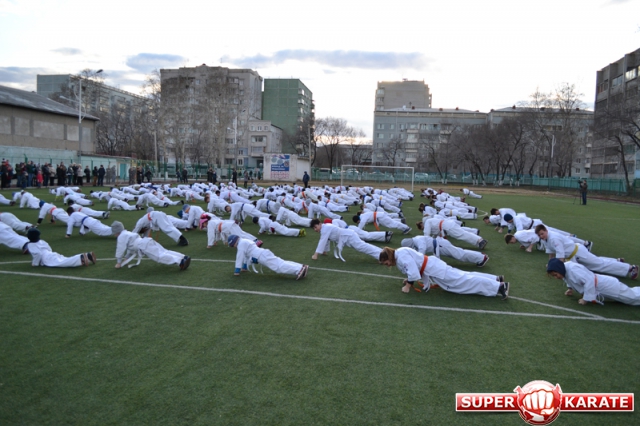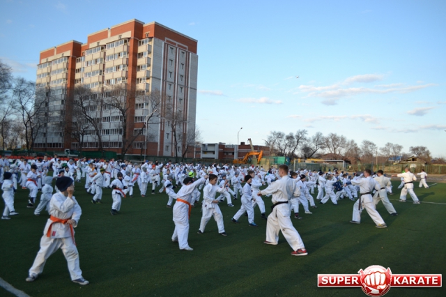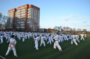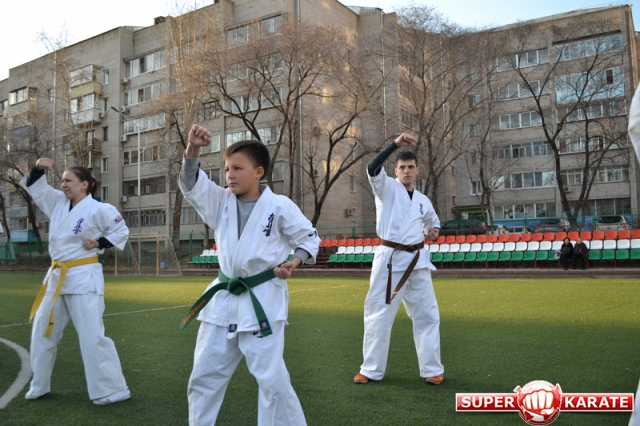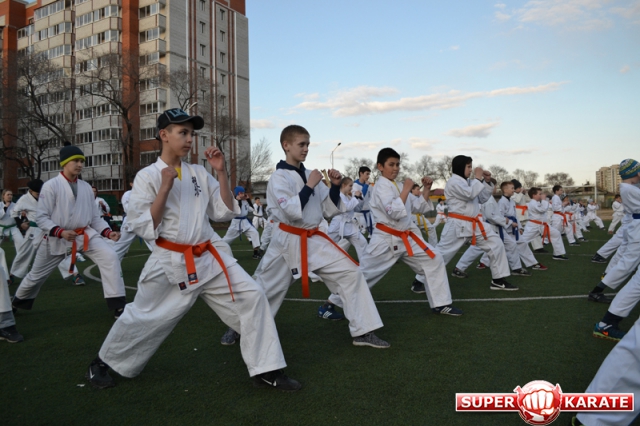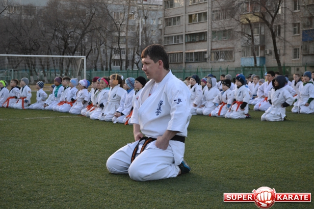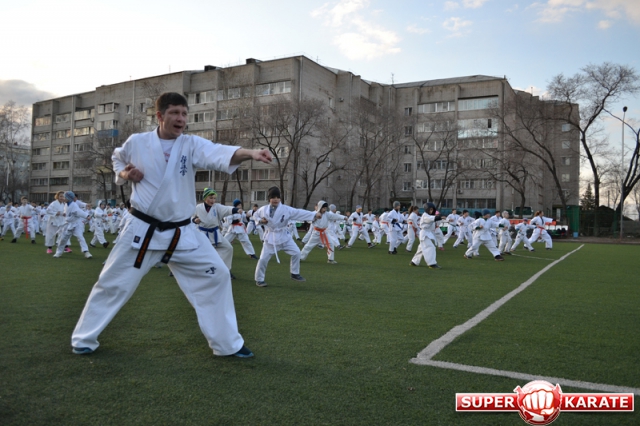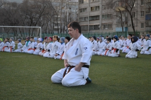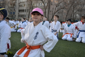 В одних рядах стояли самые юные адепты Киокусинкай рядом с черными поясами, мастерами каратэ.