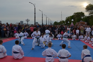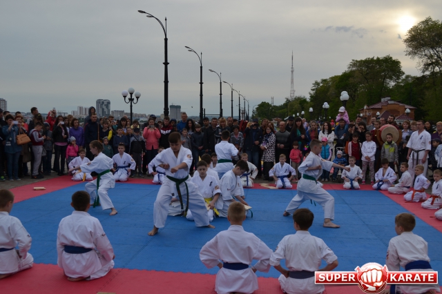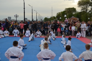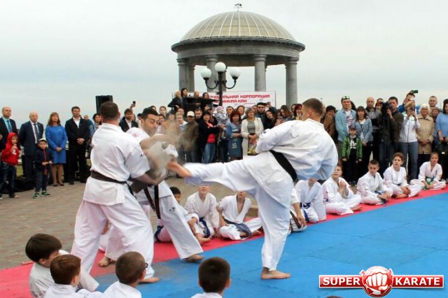 Все завершилось массовыми показательными выступлениями юных каратистов и мастеров - черных поясов киокушина.