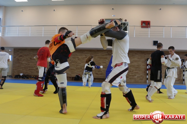 Вторая тренировка, организованная днем в спорт зале Санкт-Петербургского Горного университета, также собрала всех желающих повысить свое спортивное мастерство. Эта тренировка прошла под девизом отработки спортивных навыков в парах с новыми спарринг-партнерами. После интенсивной разминки под руководством Дмитрия Савельева, небольшой мастер-класс провел сэнсей Захари Дамьянов, который показал некоторые варианты опережений под атаки соперника.