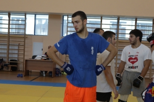 Заключительная часть тренировки прошла по заданиям Виктора Лютинского, который сделал акцент на отработку защитных действий в бою.