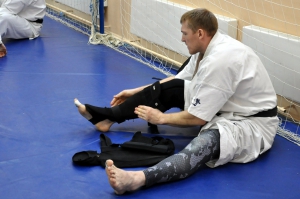 В тренировочном процессе было уделено большое внимание на отработку боевой техники. Шихан Анатолий Фесенко дал большой комплекс упражнений на баланс и развитие "спящих" групп мышц.