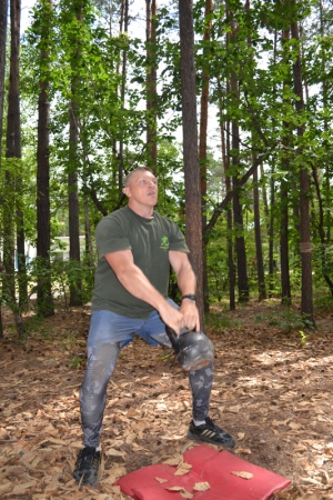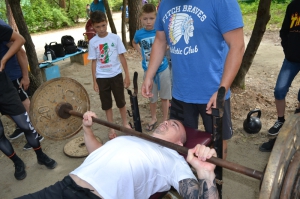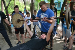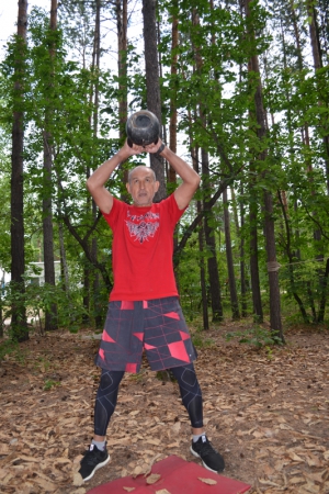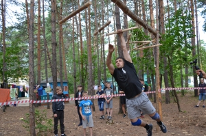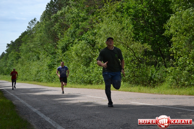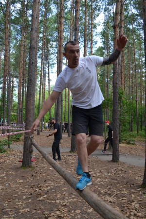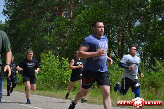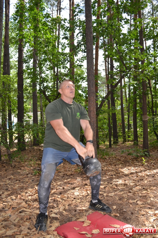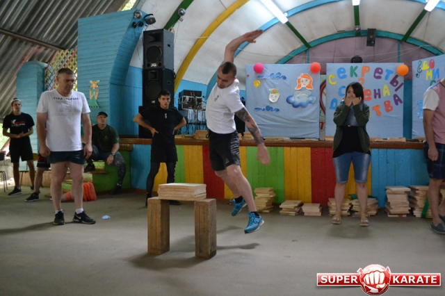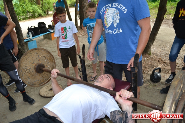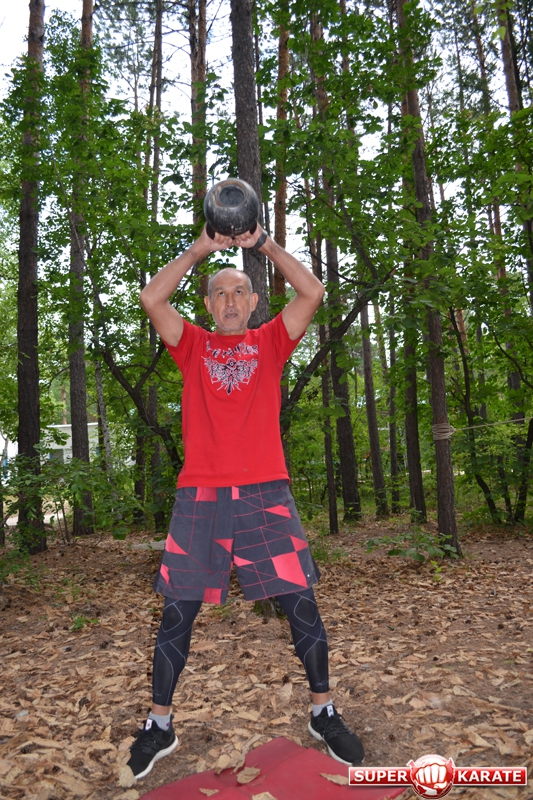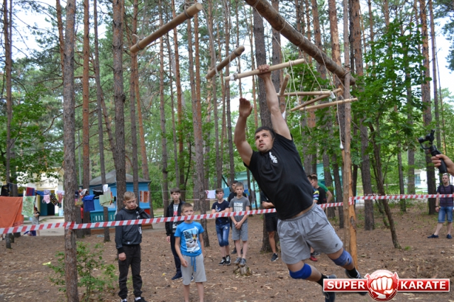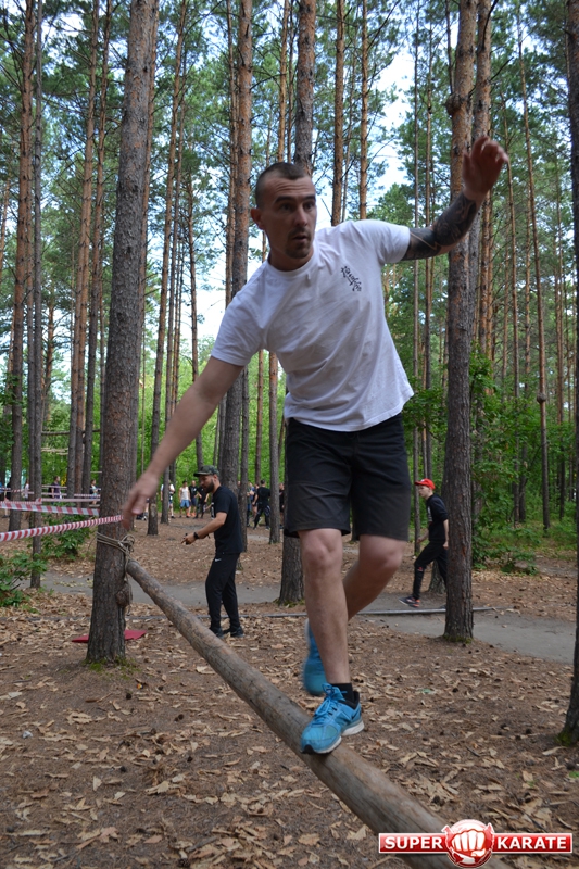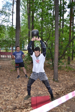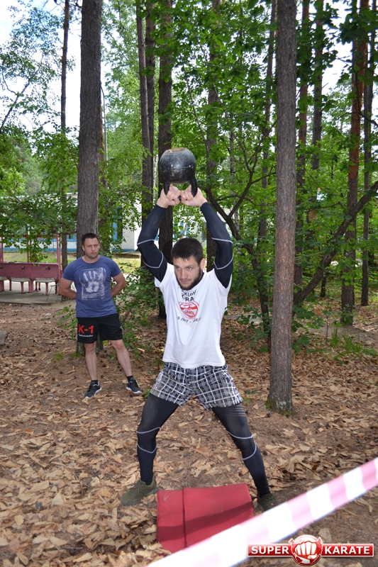 В программе: жим штанги лежа с собственным весом на максимальное количество раз, полоса препятствий (кроссфит), бег на 800 метров и тамэшивари.