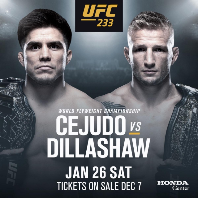 Первоначально ожидалось, что главным поединком турнира UFC 233 будет титульный бой в наилегчайшем весе между чемпионом Генри Седхудо и сбросившим вес чемпионом в легчайшем весе Ти Джеем Диллашоу. Однако позже компания UFC перенесла этот поединок на свой первый турнир для показа на канале ESPN+.