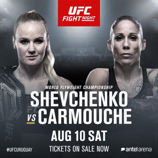 Действующая чемпионка Ultimate Fighting Championship (UFC) в наилегчайшем весе Валентина Шевченко проведет свою следующую защиту титула в матче-реванше против Лиз Кармуш, являющейся № 3 в рейтинге этой весовой категории. Бой состоится 10 августа на турнире UFC Fight Night 156 на Antel Arena в Монтевидео, Уругвай.