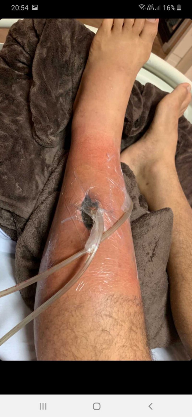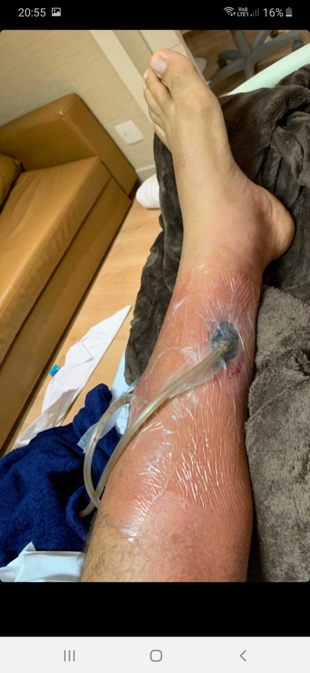 Дос Сантос, который должен был встретиться с Александром Волковым, задокументировал свою травму во всей ее красе на своей официальной странице в Instagram. На снимках виден большой кусок плоти, отсутствующий на левой ноге, и торчащие из него трубки.