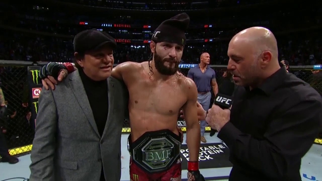 Бой был остановлен. Масвидалу была присуждена победа техническим нокаутом. И, как и ожидалось, пояс «BMF» Масвидалу вручил сам Дуэйн Джонсон по прозвищу «Скала».
