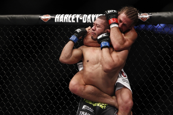 Удушающий приём сзади в стойке в MMA во всей красе