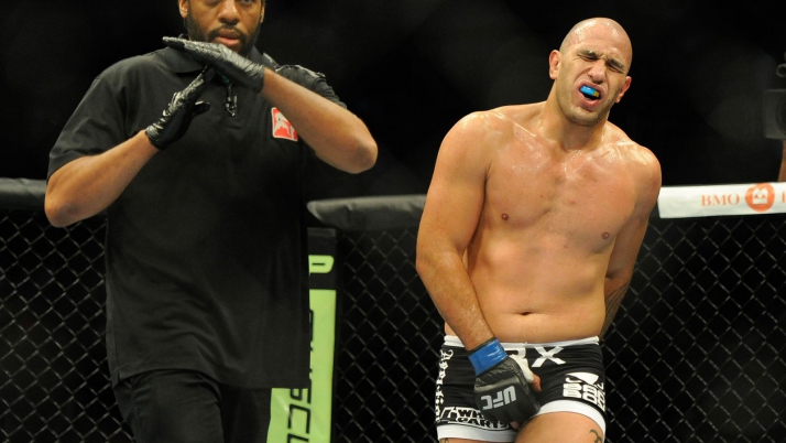 Удар в пах запрещён в спортивных единоборствах. Однако от неумышленных попаданий никто не застрахован. В том числе и в ММА. Причём, как и во многих других видов единоборств, связанных с ударами руками и ногами, набор ударов, после которых случаются такие попадания, стандартен. Из ударов руками – это апперкот. А из ударов ногами – это лоу-кик по внутренней части бедра, корявый усиро-гэри, хиза-гэри (особенно в клинче или его подобии).
