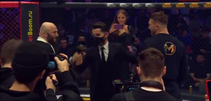 Однако что-то пошло не так. После того, как Магомед Исмаилов также вошёл в клетку, то сначала между бойцами состоялась небольшая словесная пикировка, которая переросла в рукопашную схватку. После чего в клетку один за другим стали запрыгивать зрители турнира, которые затем толпой налетели на Владимира Минеева.