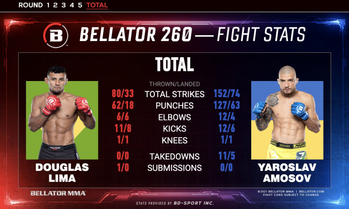 Утром 12 июня в главном противостоянии турнира Bellator 260 состоялся титульный бой в полусреднем весе: бразилец Даглас Лима защищал свой пояс от посягательств непобежденного украинца Ярослава Амосова.