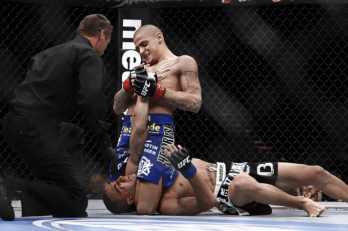Вишенкой на торте нашего рейтинга безусловно стала победа над давним обидчиком ирландцем Макгрегором. С момента первого поединка утекло много воды, а бойца уже успели сделать себе имя. Многочисленные победы, толпы поклонников, бешеная популярность никак не сказались на ходе подготовки американца к поединку. Подобного нельзя сказать об Макгрегоре ведь ирландец вместо плодотворной и скрупулезной подготовки к поединку занимался провокациями со стороны и давал весьма спорные интервью. Несмотря на то, что Конор подошел к поединку фаворитом, Дастин провел бой в своем стиле терпеливо ожидая момента для атаки, а почувствовав нужный момент, обрушил шквал ударов на Макгрегора и добил его в фирменном стиле — добиванием на земле после разящих атак у сетки. Судье ничего не оставалось сделать, как остановить бой и присудить заслуженную победу Порье.