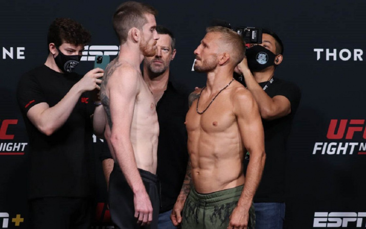 В преддверии захватывающего бойцовского вечера UFC on ESPN 27, который состоится в ночь на 25 июля в американском Лас-Вегасе, прошли традиционная процедура взвешивания и битва взглядов. В центральном поединке турнира определить сильнейшего попытаются бывший чемпион дивизиона в легчайшем весе Ти Джей Диллашоу и второй номер рейтинга Кори Сэндхаген. После обязательного «ритуала» взвешивания оба бойца показали идентичный вес, который составил 61,1 кг.