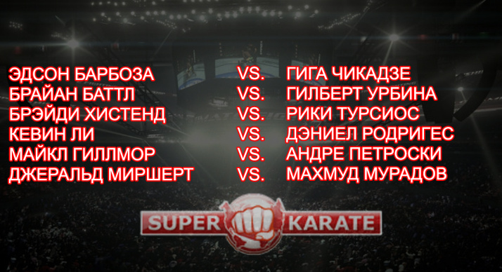 Главным событием вечера станет противостояние 35-летнего ветерана ММА из Бразилии Эдисона Барбозы и 32-летнего грузинского «Ниндзя» Гиги Чикадзе, который приложит максимум усилий, чтобы продлить победную серию до девяти побед.