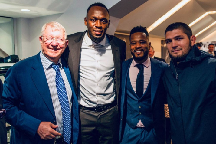 Во время поездки Хабиб воспользовался случаем и посетил домашний матч клуба «Манчестер Юнайтед», который ему удалось понаблюдать в компании сэра Алекса Фергюсона, Усэйна Болта и Патриса Эвра. Гостю «Олд Траффорд» предложили бокал вина, но дагестанец отказался и отшутился на этот счет.