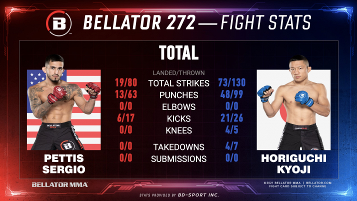В ночь на 4 декабря в Анкасвилле (Коннектикут, США) прошел турнир Bellator 272, главным украшением которого стал титульный бой в легчайшей категории между японцем Киоджи Хоригучи и американцем Серхио Петтисом.