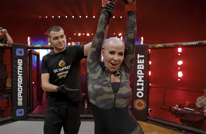 Главный бой ждал зрителя в самом конце – порноактрисы Елена Беркова и Лола Тейлор пришли в клетку уничтожить друг друга. На громкую встречу собрался посмотреть весь бомонд Epic Fighting: девушки известной профессии Олеся Малибу и Алена Пискун, а также Анастасия Волочкова, которая накануне поединка вернулась с Мальдив.
