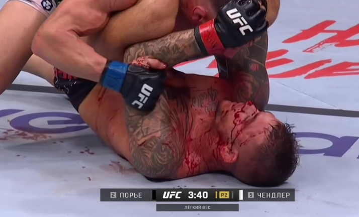 Очень зрелищным получился третий по значимости бой UFC 281, в котором настоящую рубку устроили американцы Майкл Чендлер и Дастин Порье. Схватка завершилась в третьем раунде – Порье победил на удушающем приеме. Интересно, что Дастин стал первым, кто сумел победить борца-Чендлера приемом.
