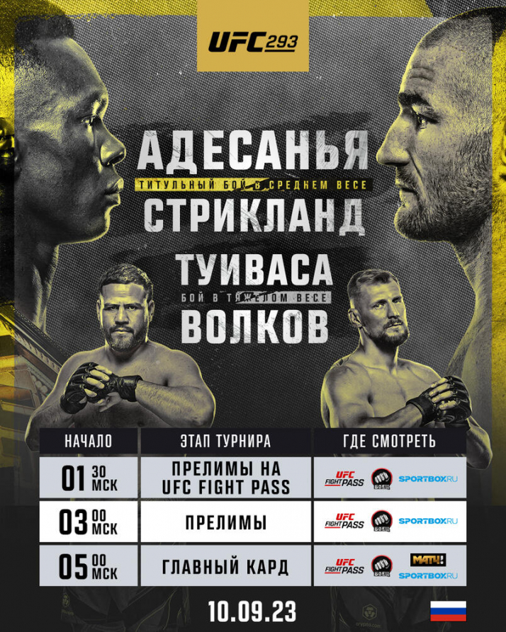 Где смотреть UFC 293: Волков vs Туиваса, Адесанья vs Стриклэнд