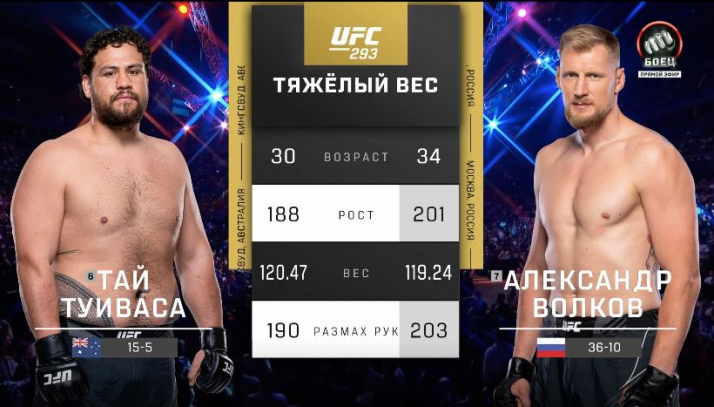 Утром 10 сентября в Сиднее (Австралия) во втором по значимости поединке турнира UFC 293 россиянин Александр Волков досрочно победил местного атлета Тая Туивасу. Бой завершился во втором раунде, "Драго" праздновал победу после успешно проведенного удушающего приема "Иезекиль".