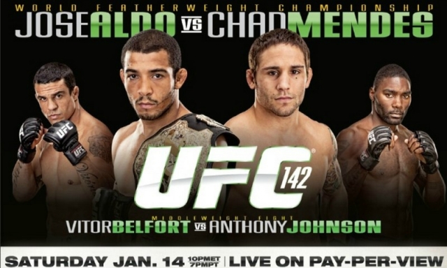 Организация Ultimate Fighting Championship завершила свой турнир в Бразилии, на HSBC Arena в Рио-де-Жанейро. Официальные итоги UFC 142: «Aldo vs. Mendes» таковы: