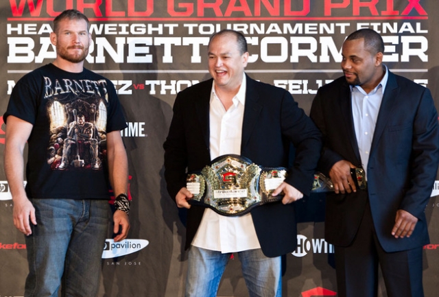 Всего за неделю до столь ожидаемого турнира UFC 146, завтра, 19-го мая, в Калифорнии состоится финальный этап Гран-при тяжеловесов Strikeforce. В решающем бою сойдутся вовсе не первоначальные фавориты мероприятия, которых жаждала видеть публика.Напомним, на старте файт-кард пестрел звездными именами, среди которых были и Федор Емельяненко, и Алистар Оверим, но завершить битву тяжеловесов предстоит Джошу Барнетту и Дэниэлу Кормье. Этот бой в любом случае будет носить исторический характер, ведь его окончание станет, по сути, и прощальным аккордом в жизни дивизиона тяжеловесов Strikeforce. Окончательный файт-кард турнира выглядит так: