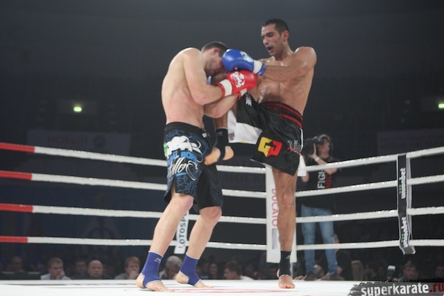 Следующий бой проходил по правилам К-1. На ринг вышли Александр Стецуренко (Россия) и Карапет Карапетян (Голландия). Как это принято у Стецуренко, он отдал начало боя и стал компенсировать отставание только во второй половине второго раунда. Карапетян оказался крепким орешком и доставил Стецуренко массу неприятностей. В итоге получился совершенно равный бой, результат которого должен был, по идее, определиться в экстрараунде. Однако двое из трех боковых судей отдали предпочтение Стецуренко. Счет судейских записок 29-29; 30-28; 30-28. Тем судьей, который посчитал результат трех раундов ничейным, был Вадим Украинцев. Который, на правах главного в судействе боев по правилам К-1 на этом турнире, провел в перерыве между боями воспитательную работу с судейским корпусом, призывая коллег к объективному судейству.