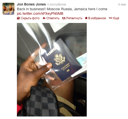 - Джон Джонс в данный момент занимается оформлением своей поездки в Москву, о чем пишет на своей страничке в твиттере.