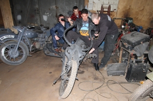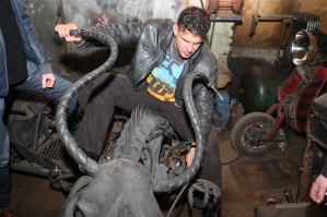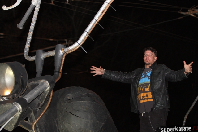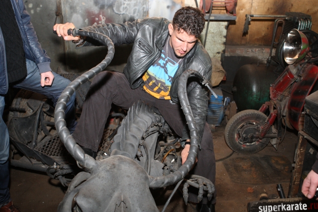 Фрэнка Мира встречал сам президент мотоклуба Александр "Хирург". Он показал достопримечательности байк-центра, а также главные мастерские, в которых и создается антураж центра и фантастические средства передвижения.